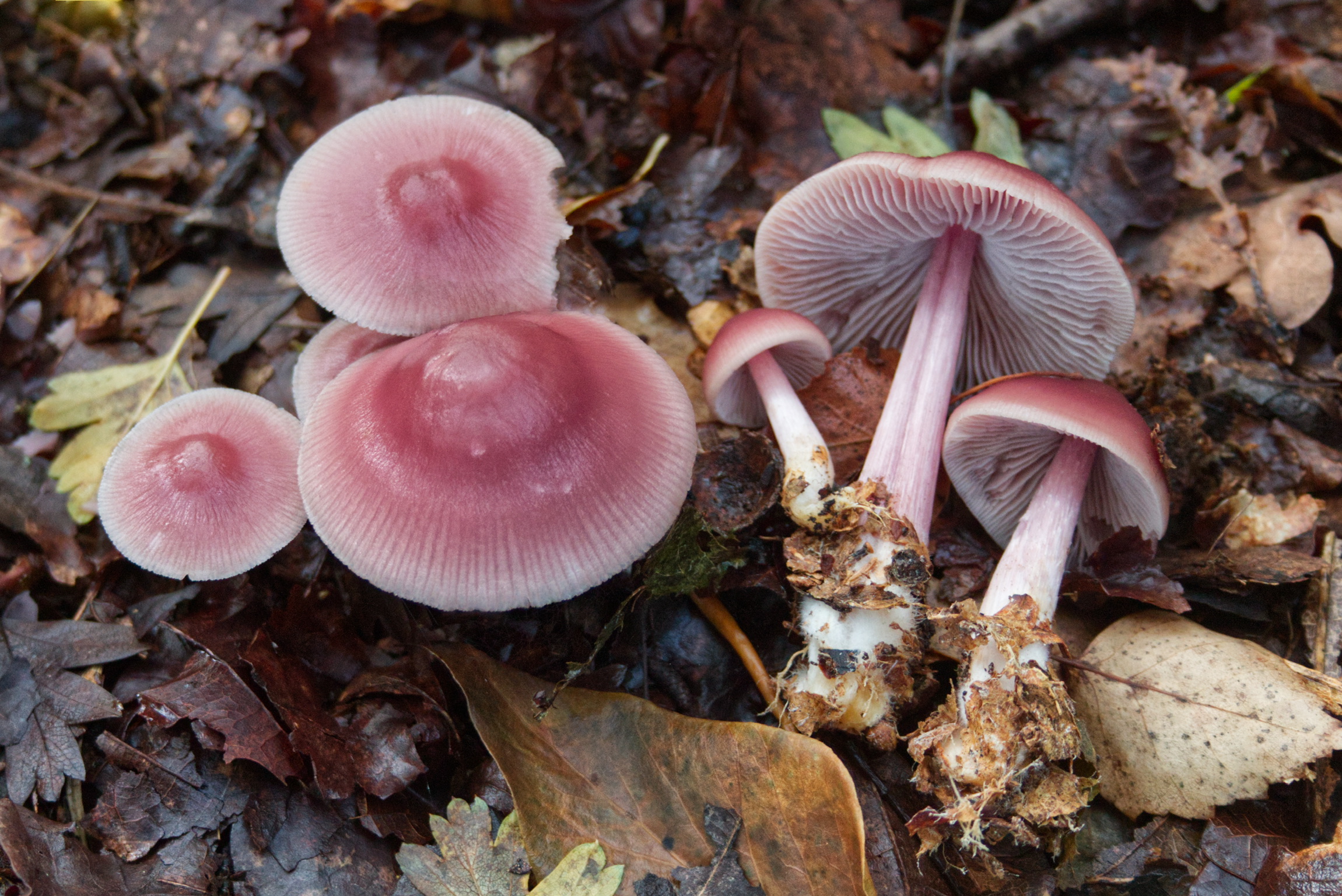 Woodland fungi are some of the first to appear, both on dead wood, living trunks, and in grass around trees. Long established woodlands are more likely to be productive than new woods and young trees. Arlington and Wistlandpound are both great areas. Later in the autumn the grassland fungi such as colourful waxcaps will appear on unfertilised grasslands, such as the coastal areas of Morte Point and Bull Point. Churchyards and parkland can also be good.