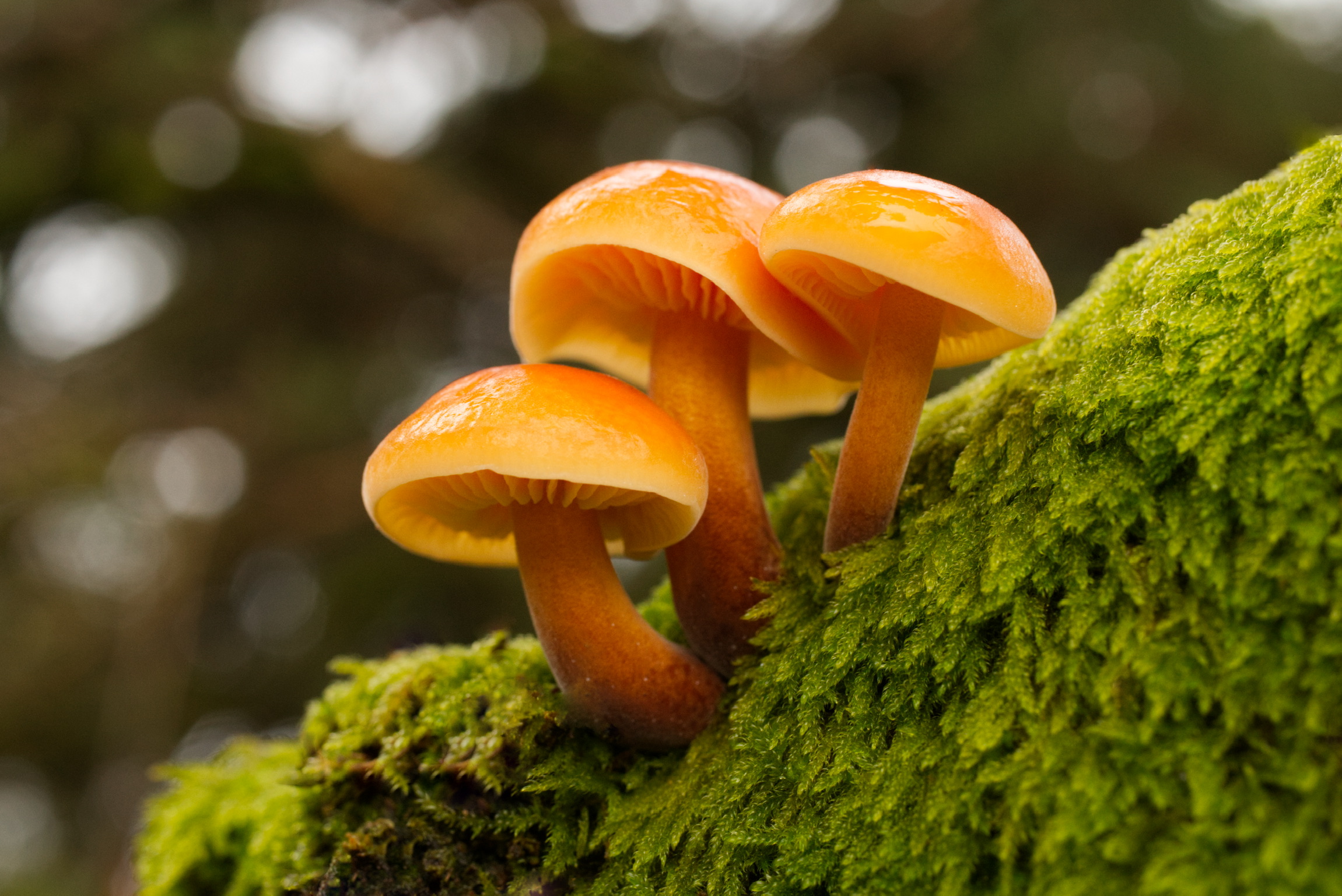 Take a plastic bag to kneel on. You are unlikely to need a tripod as most fungi are not large, but a bean bag can be useful for stabilising your camera on the ground, allowing long exposures.